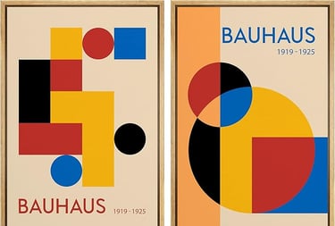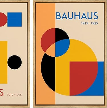 Bauhaus, geometric, or abstract art prints work perfectly in a mid-century modern room.